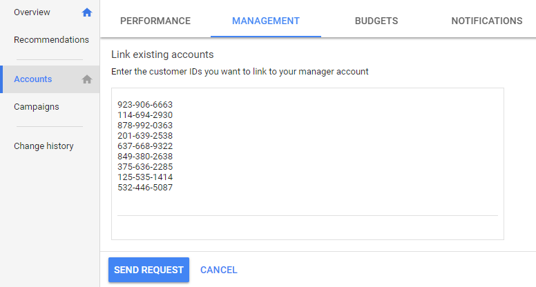 3) I ask you for an access to these accounts through my MCC and give feedback to you - "requested".