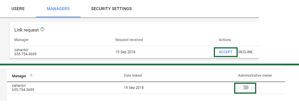 3) I ask you for an access to these accounts through my MCC and give feedback to you - "requested".